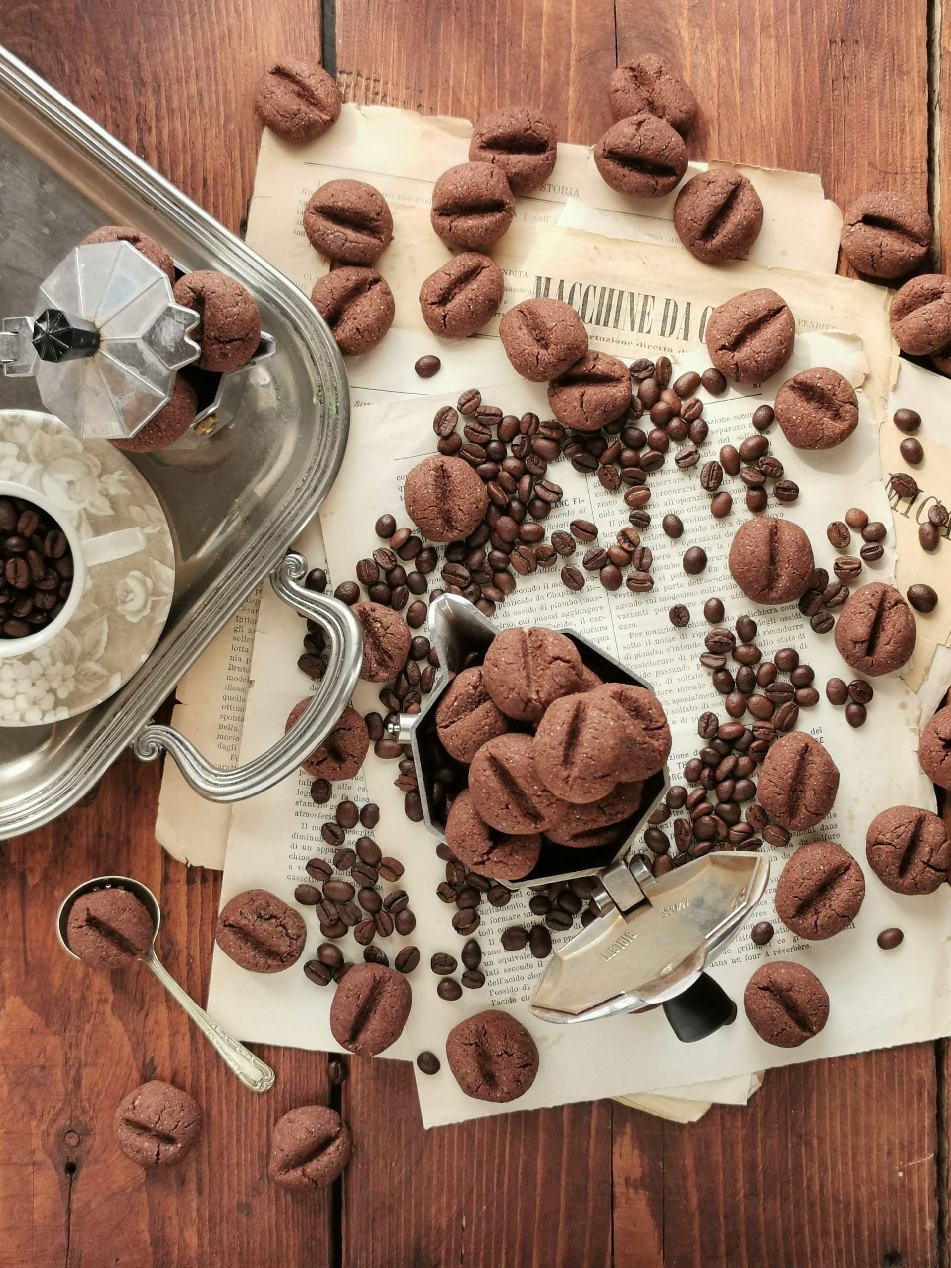 • Preriscaldate il forno a 180 gradi. In una ciotola mettete lo zucchero, l’uovo e il burro morbido. Mescolate con una forchetta e unite il caffè ristretto. Aggiungete ora la farina di grano saraceno e la farina di riso integrale. Unite un cucchiaino di lievito per dolci senza glutine e impastate con una mano per ottenere un panetto morbido. A bisogno potete spolverare con della farina di riso. Prelevate un po’ di impasto alla volta e realizzate con le mani dei biscotti dalla forma ovale grandi come noci. Posizionate i vostri biscotti sulla teglia del forno coperta da carta forno, leggermente distanziati tra loro. Prima di metterli in forno realizzate al centro di ogni biscotto un leggero segno con un coltello, come a simulare un chicco di caffè. Cuocete a 180 gradi, modalità ventilata per circa 15 minuti.
