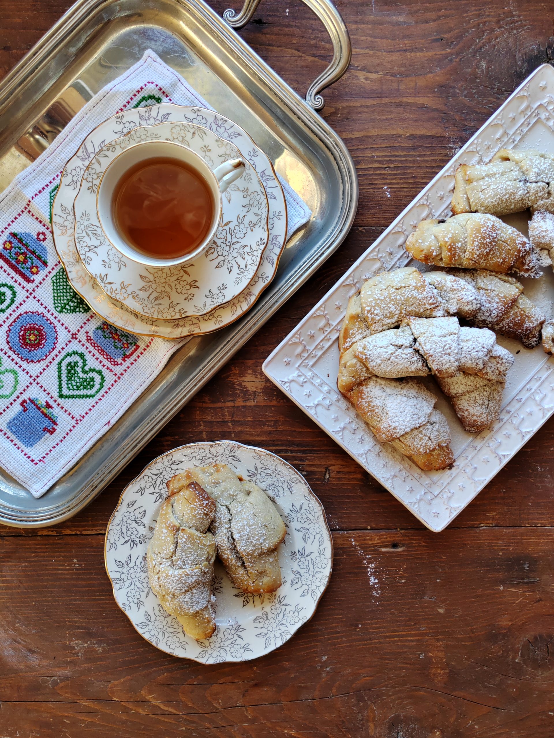 • Spalmate della crema spalmabile all’interno di ogni triangolo e avvolgete cominciando dalla parte più larga formando i classici cornetti.