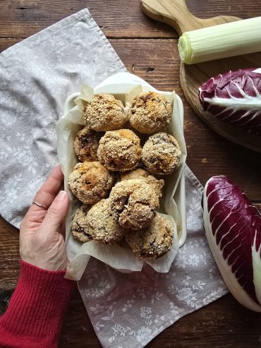 Polpette di radicchio rosso e porro, vegetariane e senza glutine, perfette come antipasto o pranzo veloce. Una ricetta senza farina.