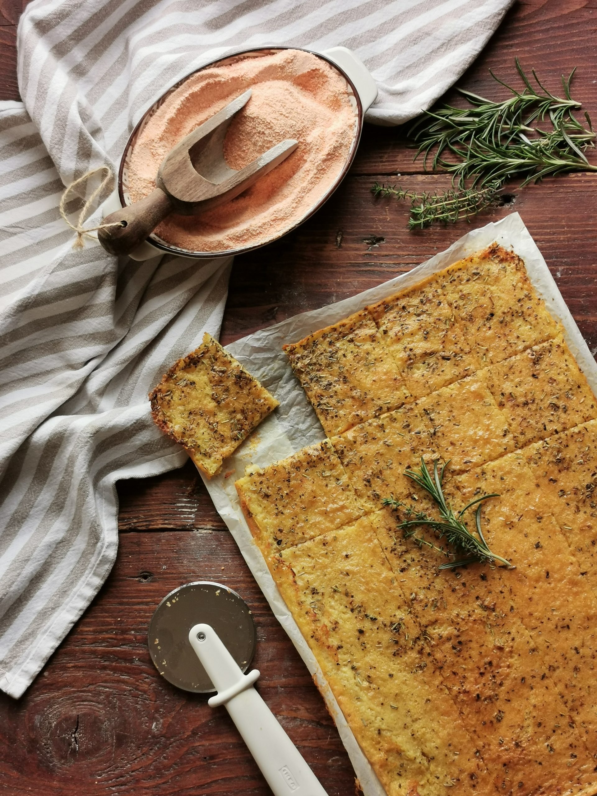 La farinata con farina di lenticchie rosse, una ricetta sfiziosa e davvero facile da realizzare!  Diventa un ottimo spuntino o aperitivo se accompagnata da salse, verdure o salumi. Ideale anche come sostituto del pane. Un’idea senza glutine sfiziosa con la sua crosticina croccante e il gusto unico.