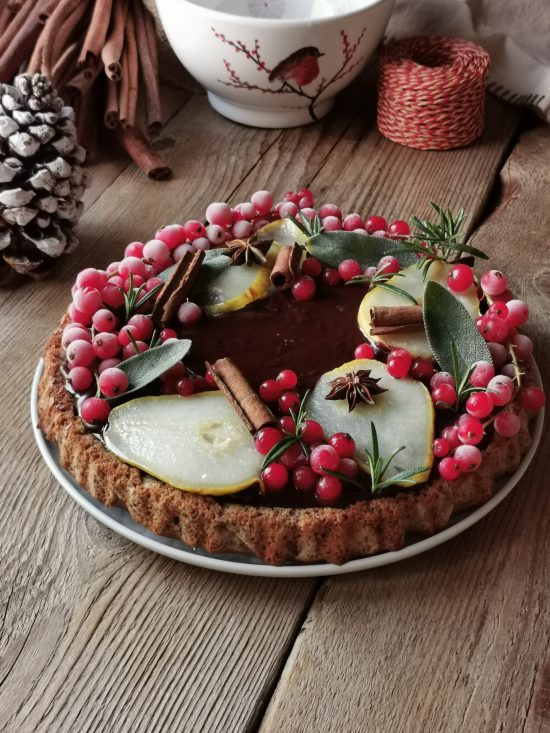 La crostata morbida con farina di castagne, farcita di golosissima ganache al cioccolato fondente è decorata con profumi e sapori delle feste invernali. Come sempre …