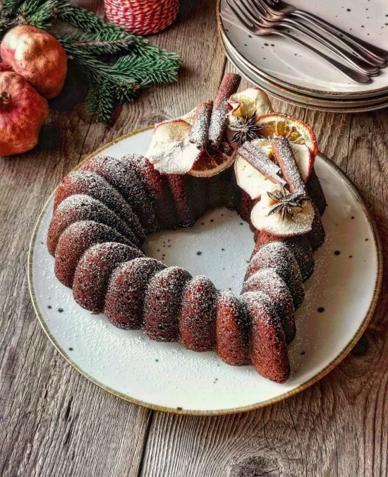 Una ciambella al vino rosso e al cacao, aromatizzata alla cannella. Una torta che si abbina benissimo ad un caldo vin brulè come fine pasto. …