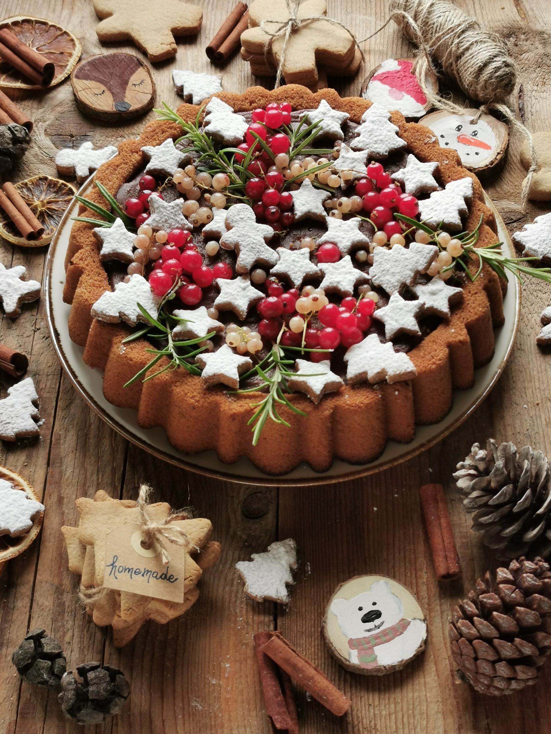 - Decorazione: ribes biscotti speziati di Natale (vedi capitolo “biscotti”) e rametti di rosmarino